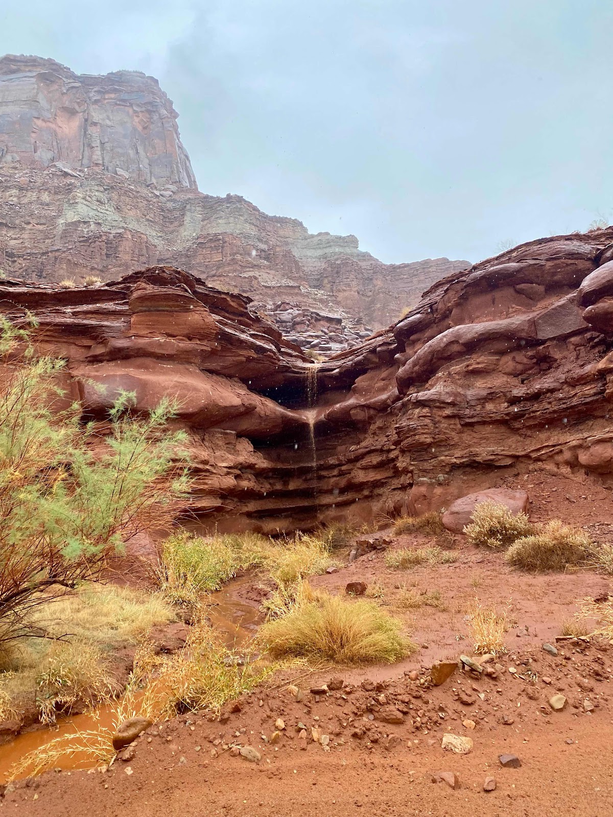 We drove around some more but due to such low clouds we skipped Mesa Arch. We saw a beautiful view of the canyons down at the big outlook and then watched them disappear as the fog rolled in.